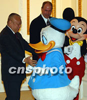 ![]() 华特·迪士尼公司主席及行政总监迈克·艾斯纳等八月三十日在香港接受传媒采访。中新社记者 任海霞 摄
