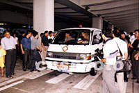 组图:在菲遇害人质骨灰回国 2001年08月31日 20:19 ![]() 在菲律宾遇害的张忠强和薛兴的家人手捧亲人的骨灰和遗照,于31日踏上了返回祖国的路途。死者的一百多位亲友赶往厦门机场迎取亲人骨灰。为防止意外,随行安排了2名医务人员。图为二名遇害人质的家属进入机场联检通道。中新社图 郑宪 徐万 摄 ![]() 在菲律宾南部遇害的中国公民张忠强和薛兴的家人手捧亲人的骨灰和遗照,于31日踏上了返回祖国的路途。图为手捧亲人的遗像、骨灰,张忠强和薛兴的家人悲痛欲绝。中新社图 郑宪 徐万 摄