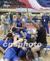 组图:中国男篮四十分惨败南斯拉夫 2001年09月01日 19:04 ![]() 中国男篮三十一日晚以四十分的差距惨败在南斯拉夫大学生队手下,与金牌失之交臂。中新社记者 李刚 摄 ![]() 在北京举办的大运会上,以四十分狂胜中国队的南斯拉夫男篮获胜后,在球场内叠罗汉以示庆祝。中新社记者 李刚 摄