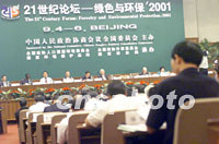 关注绿色与环保 北京举行"21世纪论坛"会议 2001年09月04日 15:46 ![]() “21世纪论坛-绿色与环保2001年会议”四日在北京开幕。本次会议的主题是人类发展与环境问题。中新社记者 满会乔 摄 ![]() “21世纪论坛-绿色与环保2001年会议”四日在北京开幕,与会外国学者认真听取会议发言。中新社记者 满会乔 摄