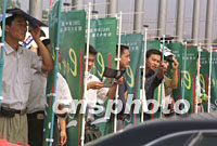 图:西安市民顶烈日观看贸洽会 2001年09月05日 18:35 ![]() 西安市民五日在烈日下靠广告牌遮阳观看贸易洽谈会开幕式,等待进入展厅。本届展会上的现代化民用产品吸引了众多参观者。中新社记者 宋吉河 摄
