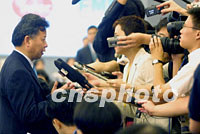 图:金立群在第八届APEC财长会议接受采访 2001年09月06日 16:31 ![]() 第八届APEC财政及央行副手会六日在中国江苏省苏州市举行,中国财政部副部长、本届会议主席金立群引起了许多记者的兴趣,在会前被包围采访。中新社记者 李刚 摄 |