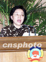![]() 全国政协人口资源环境委员会副主任江泽慧六日在北京举行的“21世纪论坛--绿色与环保2001会议”闭幕会上致辞,倡议人们携手共建人类绿色文明。中新社记者 满会乔 摄
