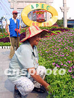 组图:苏州喜迎第八届APEC财长会 2001年09月07日 15:08 ![]() 第八届APEC财长会议近日在中国江苏省苏州市举行,为欢迎各国会议代表的到来,苏州市在大街小巷摆放了七十六万盆鲜花装点市容,这是苏州市观前街路口的花坛前,清洁工人正在护理摆放的鲜花。中新社记者 李刚 摄 ![]() 第八届APEC财长会议近日在江苏省苏州古城举行,苏州吴宫喜来登大酒店以其中国古典吴越风格的建筑造型和现代化的软硬件设施迎接各国与会的财长们。中新社记者 李刚 摄