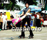 图:溜冰表演宣传迎九运 2001年09月09日 18:17 ![]() 中国第九届全国运动会将于十一月在广州揭幕,广州市体育局九月在天河体育中心举行“迎九运宣传《体育法》活动”,引导市民充分利用体育场地提高身体素质。图为广州市溜冰队为市民进行障碍溜冰表演。中新社记者 罗仰明 摄