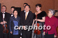 ![]() 正在俄罗斯访问的中国总理朱镕基和夫人劳安,九月九日晚在中国驻俄罗斯大使馆与俄罗斯演员合影留念。中新社记者 孟庆雷 摄