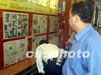图文:香港市民抢阅号外 对美被袭众说纷纭 2001年09月13日 03:50 ![]() 昨日美国遭受历史上最严重的恐怖袭击后,今日一大早香港市民就聚集到报馆的橱窗前观看有关情况。中新社记者 任海霞 摄 ![]() 9月12日上午,一名香港市民在汇丰银行总部前的大狮子前阅读美国局势的报纸。中新社图 任晨鸣 摄