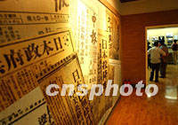 图:南京展出华文报刊史料 2001年09月13日 09:51 ![]() 南京在原国民党总统府里新开办史料展览,其中华文报刊当年对日本在二战投降的报道版面,至今令人难忘。出席华商大会和华文传媒论坛的世界华人华侨贵宾,“九·一八”纪念抗日战争之日将来此参观。中新社记者 贾国荣 摄 |