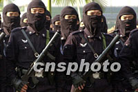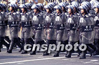 ![]() 十五日,广东两千多名警察、二十多个警种在广州市天河北路和珠江水面举行“迎九运、保安全”誓师大会。图为训练有素、纪律严明、反应快速的特警队在誓师大会上露面。中新社记者 梁永强 摄 ![]() 十五日,广东两千多名警察、二十多个警种在广州市天河北路和珠江水面举行“迎九运、保安全”誓师大会。 随时能机动应变、快速出击的防暴警队,在誓师大会上展示了虎虎生威的形象。中新社记者 梁永强 摄