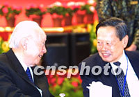 图:钱伟长和杨振宁在华商大会上 2001年09月16日 20:05 ![]() 第六届世界华商大会组委会十六日在南京举行盛大欢迎宴会,全国政协副主席钱伟长和与会的著名美籍华裔科学家杨振宁博士亲切交谈。中新社记者 李刚 摄 |