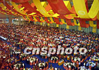 华商汇古都:五千华商共举杯庆团圆 2001年09月16日 20:57 ![]() 第六届世界华商大会首次晚宴十六日晚在南京国际会展中心举行,招待出席此次大会的五千名代表。中新社记者 史利 摄
