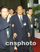 全国人大常委、著名华商曾宪梓十七日在南京市参观华商大会的经贸交流展览会。中新社记者史利摄