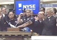 中新网纽约9月17日消息:美国纽约证券交易所在休市四天后与美国当地时间周一17日早上9:32宣布重新开市。 重新开盘前,交易所主席格拉索带领交易员一起默哀2分钟,哀悼九一一恐怖袭击事件的受害者。在“天佑美国”一曲后,交易便正式开始。 就在纽约股市恢复交易前不久,美国联邦储备局今天突然宣布将联邦基金利率和贴现率分别下调0.5个百分点,给美国股市带来好消息。 更多报道:中新财经 |