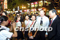 图:少先队员和华商在夫子庙合影 2001年09月17日 22:47 ![]() 第六届华商大会代表十七日晚游览南京著名风景区夫子庙,南京的少先队员好奇地与代表们攀谈并合影。中新社记者 李刚 摄 |