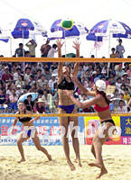 图:九运会沙滩排球赛揭幕战山东获胜 2001年09月20日 14:36 ![]() 第九届全国运动会沙滩排球比赛于二十日上午在广东阳江开赛,揭幕赛在山东队和广东队之间展开,结果实力强劲的山东队(面对镜头者)以二比零轻取对手。中新社图 梁永强 摄 |