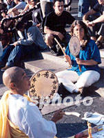 图:日本和尚超度亡灵 2001年09月21日 10:55 ![]() 日本山妙法寺一位和尚十九日在曼哈顿下城联合广场击鼓诵经,为“九一一”死难者超度。中新社记者 郭健 摄 |