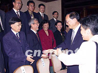 唐家璇:中国人民对美遭受恐怖攻击感同身受 2001年09月21日 16:52 ![]() 正在华盛顿访问的中国外长唐家璇,日前在会见当地华人华侨代表时,代表中国政府向他们表示亲切慰问,希望他们为中美关系的健康稳定发展多做努力。中新社记者 徐德金 摄 ![]() 正在华盛顿访问的中国外长唐家璇在其下榻的饭店会见华人华侨代表。图为唐家璇与“百人会”主席邓兆祥(右一)等在一起。中新社记者 徐德金 摄