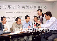 图:"九一一受灾华资公司援助联络中心"投入工作 2001年09月22日 13:51 ![]() 为帮助“九一一”劫难中受灾的一百多家华资企业处理善后和重建业务,美国中国商会和亚洲文化企业有限公司共同设立了“九一一受灾华资公司援助联络中心”。该中心投入服务的第二天(九月二十一日),中国驻纽约总领馆的商务官员来到中心看望义务工作者。图为本身也是受害者的姚定康(右一)向领馆官员和媒体介绍联络受难者的情况。中新社图 龚文谟 摄 |