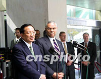 唐家璇外长与鲍威尔会谈 双方达成五方面共识 2001年09月22日 15:17 ![]() 9月21日中午,中国外长唐家璇在美国国务院与鲍威尔国务卿举行会晤,就中美双边关系和反恐怖领域的合作等议题进行广泛的交流。唐家璇外长对媒体记者说,会晤是成功的、十分有益的、建设性的。中新社图 徐德金 摄 ![]() 九月二十一日中午,中国外长唐家璇在美国国务院与鲍威尔国务卿举行会晤,双方表示将在反恐怖领域进行更好的合作。中新社图 徐德金 摄
