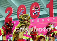 图:广州掀起迎九运高潮 2001年09月22日 16:47 ![]() 中国九运会进入倒计时五十天之际,广州市已处处呈现九运会的气氛。广州天河体育中心举行迎九运宣传活动,吉祥物“威威”与醒狮共舞。中新社图 陈文 摄 |
