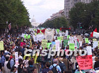 组图:华盛顿举行反战大游行 2001年09月30日 15:39 ![]() 九月二十九日,美国首都华盛顿举行大规模的反战集会和游行,成千上万反战人士高呼“不要战争,不要种族主义”等口号,沿着宾西法尼亚大道浩浩荡荡向国会山方向进发。中新社记者 徐德金 摄 ![]() 九月二十九日,成千上万美国反战人士汇集华盛顿,举行反战游行。他们高举“不要战争,不要种族主义”,“战争是恐怖”,“停止军事暴力”等标语牌,高呼口号。中新社记者 徐德金 摄