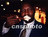 图:非洲旅游者在福州过中秋 2001年10月06日 10:12 ![]() 随着福州市对外开放步伐的加快,越来越多的非洲人到福州旅游。国庆中秋假期里,一位非洲游客在福州一家餐厅用餐,兴致勃勃地用筷子品尝中国的食品。中新社图 陈勇 摄 |