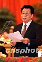 ![]() 辛亥革命九十周年纪念大会九日在北京人民大会堂举行,共青团中央第一书记周强在会上发言。中新社记者 毛建军 摄 ![]() 辛亥革命九十周年纪念大会九日在北京人民大会堂举行,中共中央政治局常委、全国政协主席李瑞环主持会议。中新社记者 毛建军 摄
