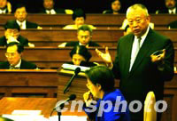 民调显示施政报告公布后董建华支持度上升 2001年10月11日 21:07 ![]() 香港特区行政长官董建华,10月11日在香港立法会就他昨日所做的2001年施政报告接受议员提问。中新社记者 任晨鸣 摄 ![]() 香港立法会主席范徐丽泰,10月11日陪同行政长官董建华到立法会回答议员关于施政报告的提问。中新社记者 任晨鸣 摄
