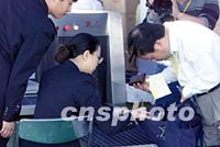 ![]() 在十四日上午举行的的APEC新闻中心启用仪式上,笑逐言开的中国外交部新闻发言人朱邦造被记者包围,并就APEC高峰会准备情况以及台湾代表出席会议等问题作答。中新社记者 毛建军 摄 ![]() 设在上海明珠塔下的APEC新闻中心十四日上午正式启用,入口处由保卫人员对所有进入者实行严格检查,以确保安全。中新社记者 毛建军 摄