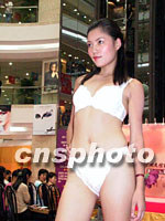 周日广州举办一场“秋醉伊人”二零零一年秋冬女士时尚潮流展示会,模特在演绎最显女士魅力的内衣。中新社图 刘卫勇 摄