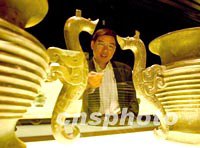 图:为APEC展示青铜文物 2001年10月16日 15:43 ![]() 上海博物馆周志聪副研究员准备好为十月APEC会议的嘉宾介绍中国文物,这对两千多年前在安徽铸造的龙手青铜器,借鉴了海马的形象。中新社记者 贾国荣 摄 |