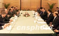 组图:唐家璇会见俄罗斯外长伊万诺夫 2001年10月17日 11:19 ![]() 中国外交部长唐家璇十七日在上海国际会议中心会见前来参加亚太经合组织(APEC)会议的俄罗斯外长伊万诺夫。中新社记者 毛建军 摄 ![]() 中国外交部长唐家璇十七日在上海国际会议中心会见前来参加亚太经合组织(APEC)会议的俄罗斯外长伊万诺夫。中新社记者 毛建军 摄