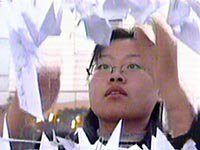 图:东北大学女生悼念张学良校长 2001年10月17日 14:19 ![]() 中国东北大学一名女生十七日在校园里挂起洁白的千纸鹤,悼念日前逝世的前东北大学校长张学良。 |