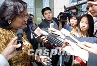 图:马来西亚贸易部长接受记者采访 2001年10月18日 13:47 ![]() 参加APEC双部长会议的马来西亚贸易部长拉菲达·阿齐兹,十八日刚刚走出上海国际会议中心就被记者团团包围。中新社图 刘殊瑾 摄 |