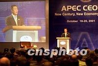 组图:何厚铧出席2001年APEC CEO峰会 2001年10月18日 16:23 ![]() 澳门特别行政区行政长官何厚铧十八日在上海出席亚太经合组织工商领导人峰会(APEC CEO),并发表演讲。中新社记者 毛建军 摄 ![]() 澳门特别行政区行政长官何厚铧十八日在上海出席亚太经合组织工商领导人峰会(APEC CEO),并发表演讲。中新社记者 毛建军 摄