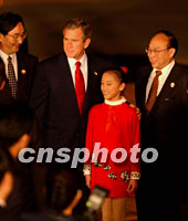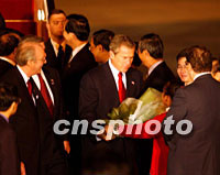 ![]() 10月18日,美国总统布什抵达上海浦东国际机场,前来参加亚太经合组织领导人非正式会议。这是美国总统布什下飞机后接受献花。中新社图 ![]() 美国总统布什乘坐空军一号专机十八日晚飞抵上海浦东国际机场,与向他献花的上海小故娘合影留念。