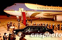 ![]() 美国总统布什乘坐空军一号专机十八日黄昏飞抵上海浦东国际机场,立即坐进总统专车驶入市区。中新社记者 贾国荣 摄 |