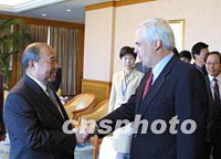 APEC特写:跨国公司“高层公关”忙(多图) 2001年10月19日 14:27 ![]() 中国外经贸部部长石广生(右)十九日在上海会见出席APEC工商领导人峰会的美国时代华纳集团总裁李文(左)。中新社记者 潘索菲 摄 ![]() 中国外经贸部部长石广生十九日在上海会见出席APEC工商领导人峰会的美国联邦快递集团主席史密斯。石广生说,美国联邦快递在中国快递市场捷足先登。中新社记者 潘索菲 摄