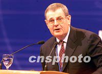 通用汽车董事长:社会责任使企业卓尔不群 2001年10月19日 17:31 ![]() 美国通用汽车公司董事长约翰.史密斯十九日在上海举行的亚太经合组织工商领导人峰会(APEC CEO)专题发言中,发表主题演讲。中新社记者 毛建军 摄