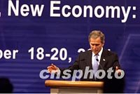 美国总统布什二十日在上海香格里拉饭店举行的亚太经合组织工商领导人峰会上发表演讲。中新社记者 毛建军 摄