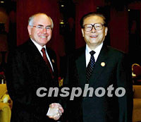 图:江泽民会见澳大利亚总理霍华德 2001年10月20日 16:13 ![]() 10月20日,中国国家主席江泽民在上海会见前来参加2001年亚太经合组织领导人非正式会议的澳大利亚总理霍华德。中新社图 |