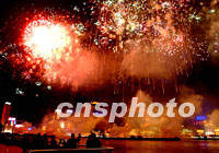 组图:浦江烟花贺峰会 2001年10月20日 22:29 ![]() 二十日晚,色彩缤纷的烟花映红上海浦江两岸,祝贺APEC高峰会举行。中新社记者 毛建军 摄 ![]() 大型景观焰火表演“今宵如此美丽”于10月20日晚上9时在浦江之滨亮相,五彩缤纷的焰火吸引APEC会议的摄影记者在东方明珠塔下不停地按下快门。中新社图 肖方 摄