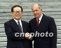 江泽民说,打击恐怖主义是一项长期艰巨任务 2001年10月23日 21:04 ![]() 国家主席江泽民二十三日在北京欢迎来访的智利总统拉戈斯。中新社记者 满会乔 摄