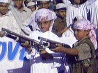 斯里兰卡南部城市卡拉奇日前爆发大规模反美示威游行,图为发誓要发动“圣战”的穆斯林小男孩。