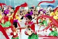 二十七日,广东肇庆举办“迎九运、创文明、巾帼健身展风采”大型团体操汇演,四千多人在文化广场表演“腰鼓舞”。中新社图 黄耀辉 摄
