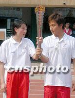 九运会九运会火炬传递仪式28日在香港举行,运动员代表方力申、王晶负责火炬传送。火炬即日运往九运会主办地广州。中新社图 卢峰 摄