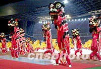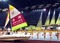 ![]() 九运会开幕式首次合练在广东奥林匹克体育中心举行。图为四百一十八头南狮齐齐起舞贺九运。中新社图 梁永强 摄 ![]() 九运会开幕式首次合练在广州举行。图为香港代表队扬帆进入主会场。中新社图 梁永强 摄