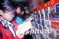 图:入世在即百姓热买WTO有关书籍 2001年11月07日 11:01 ![]() 北京王府井新华书店日前增设有关WTO的书籍专柜,每天都吸引许多人前来翻阅和购买。中国加入世界贸易组织,成为目前中国百姓最关心的事情。中新社记者 张勤 摄 |