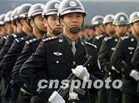 北京市公安局巡察大队在日前的阅兵式上接受检阅,同时接受严打斗争第二阶段任务。中新社记者 宋吉河 摄