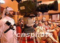 图:卡塔尔半岛电视台成为独家现场直播电视台 2001年11月10日 19:03 ![]() 正在卡塔尔首都多哈举行的第四届WTO部长级会议上,卡塔尔半岛电视台是现场唯一准许现场直播的电视台。中新社记者 钱兴强 摄 |